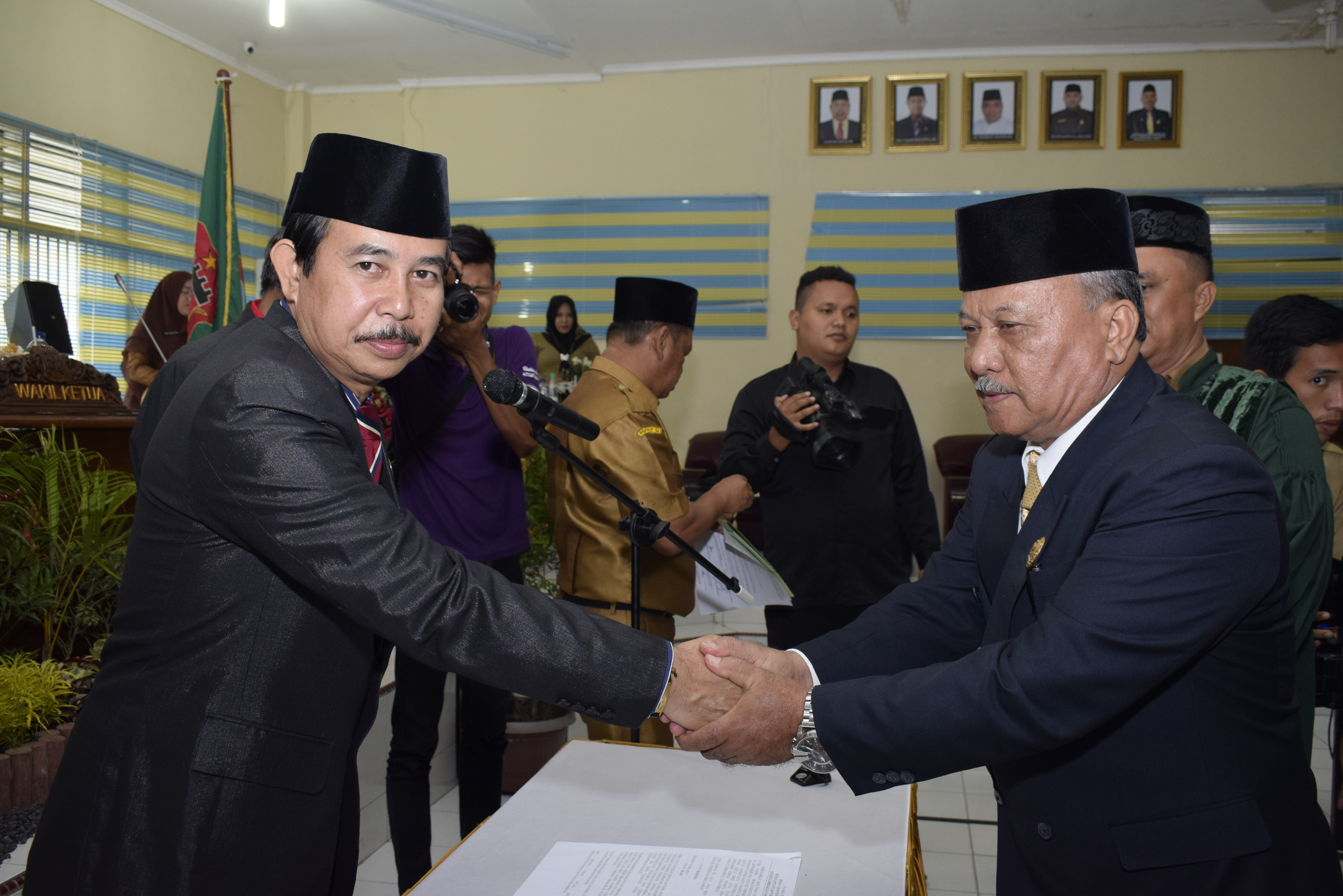 Wakil Ketua DPRD Kota Tanjungbalai Leiden Butar-butar, SE di dampingi Wakil Ketua II DPRD Kota Tanjungbalai Ir. Rusnaldi Dharma Memimpin Rapat Paripurna Istimewa DPRD Kota Tanjungbalai Tentang Pengambilan Sumpah/Janji Pengganti Antar Waktu (PAW) H. Maralelo Siregar.